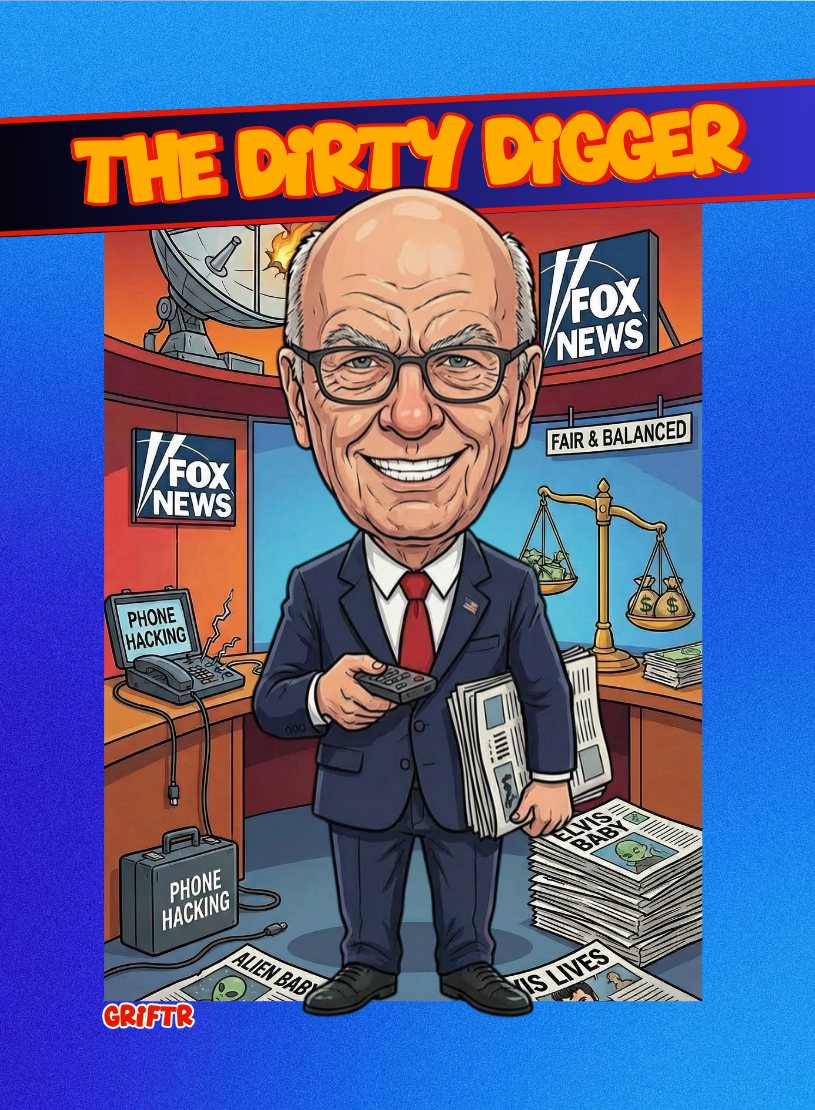Rupert Murdoch inherited a newspaper, and built a propaganda machine called Fox News. He was caught lying about election fraud and paid $787 million in settlements. His news networks lies about WMDs helped the US get involved in the Middle East. At 92, still swapping wives while crushing workers—media's forever griftr king.