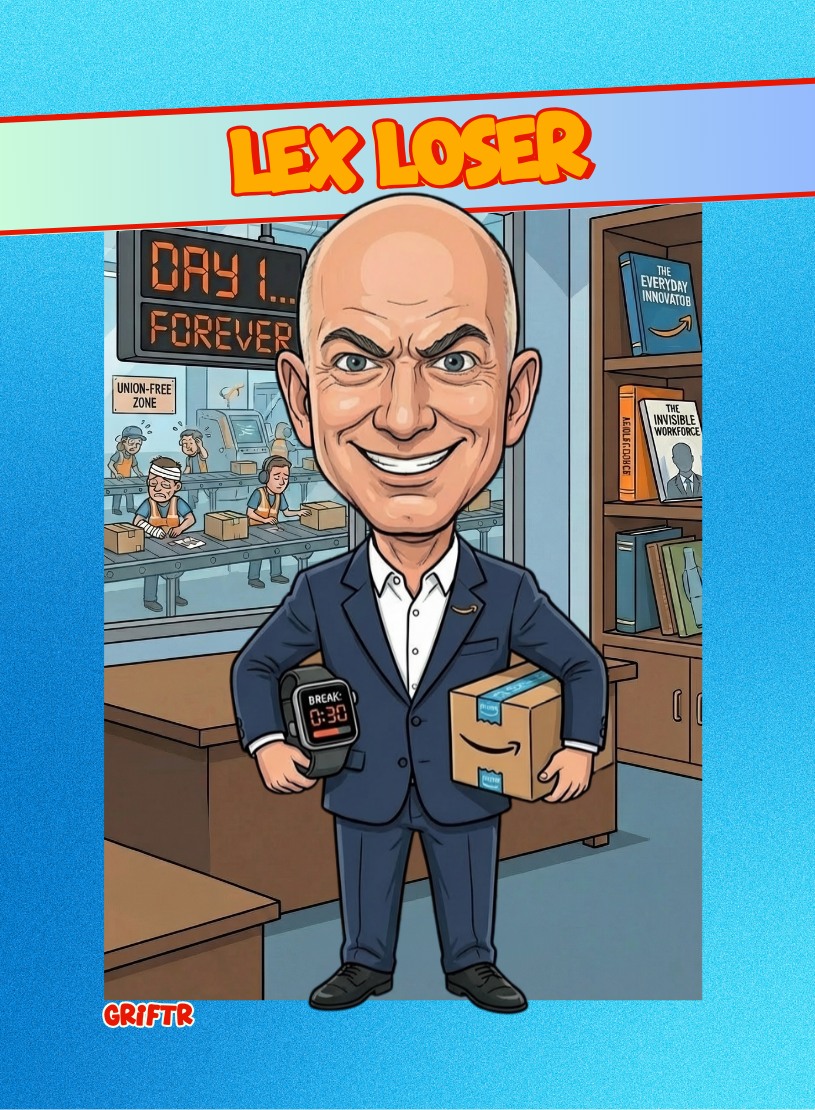 Jeff Bezos went from likable nerd to corporate overlord when he turned a garage bookstore into an empire that abuses itws workers. He pays zero taxes, buys newspapers, and flies penis rockets while fighting unions. HIs Yacht costs half a billion dollars, and his warehouse employees are treatred terribly.