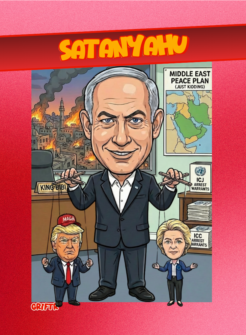 An architect of agony who builds his throne on the calcified bones of children and the ashes of international law. He doesn't seek peace he seeks a permanent harvest of blood to postpone his own prison sentence. A ghoul wearing a suit.